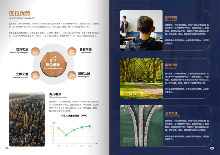 - 區(qū)位優(yōu)勢(shì):通過圖文結(jié)合的方式,闡述項(xiàng)目在交通、人流、教育、環(huán)境等方面的獨(dú)特優(yōu)勢(shì)