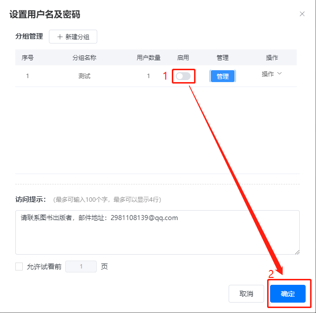 打開【啟用】,點擊【確定】,讀者便需要輸入正確的用戶名和密碼才能觀看書本。