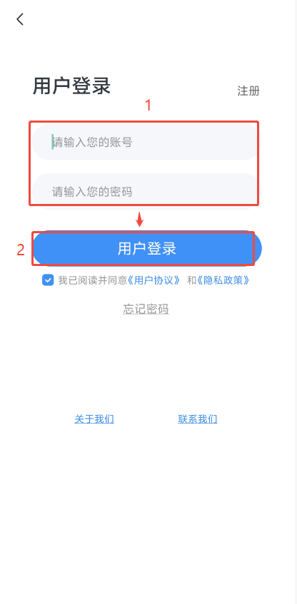 (2)打開云展網APP,點擊【我的】,然后點擊【登錄】,輸入賬號和密碼后點擊【用戶登錄】。