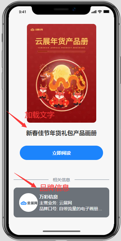 【加載品牌信息】:添加自己的品牌信息展示在加載頁面上(僅支持在手機端顯示);品牌信息設置教程
