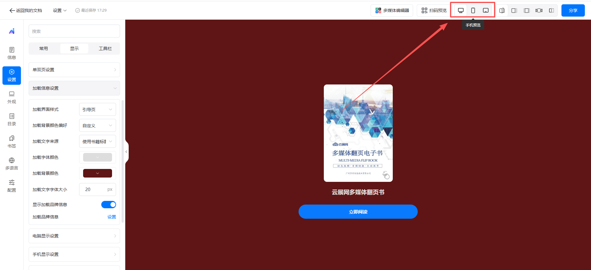 用戶可以自定義設置電子書加載頁面的文字,圖片、和添加視頻作為開場介紹,還可以在加載頁面上展示自己的品牌信息,實現個性化展示和品牌推廣。