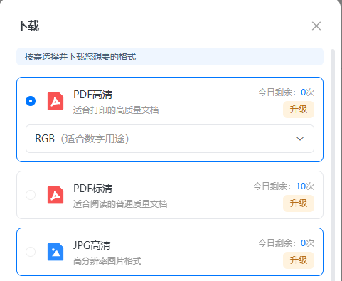 使用模板制作的電子書,可導出PDF格式,無翻頁效果,電腦端和手機端都可打開閱讀。PDF高清適合打印,畫質清晰;PDF標清則適合普通閱讀。