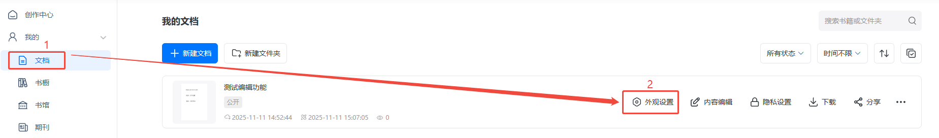 點(diǎn)擊【文檔】,找到對(duì)應(yīng)電子畫冊(cè),點(diǎn)擊【外觀設(shè)置】。