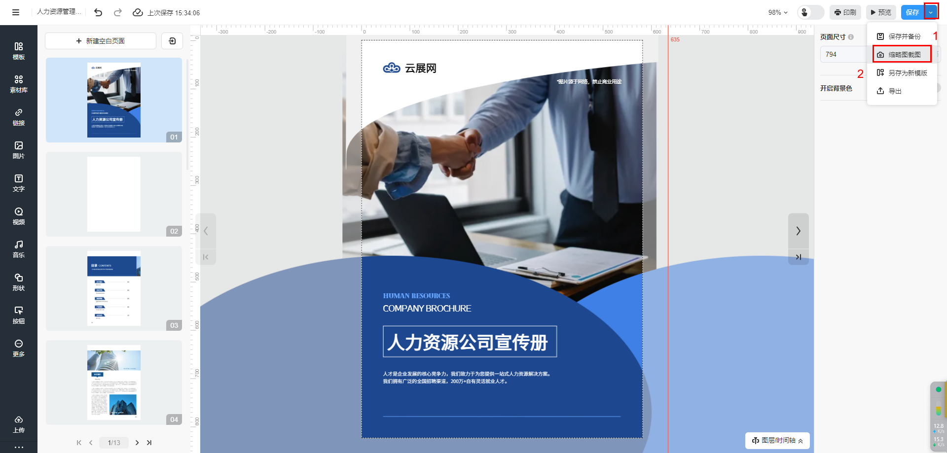 點擊保存右側下拉鍵,選擇縮略圖截圖