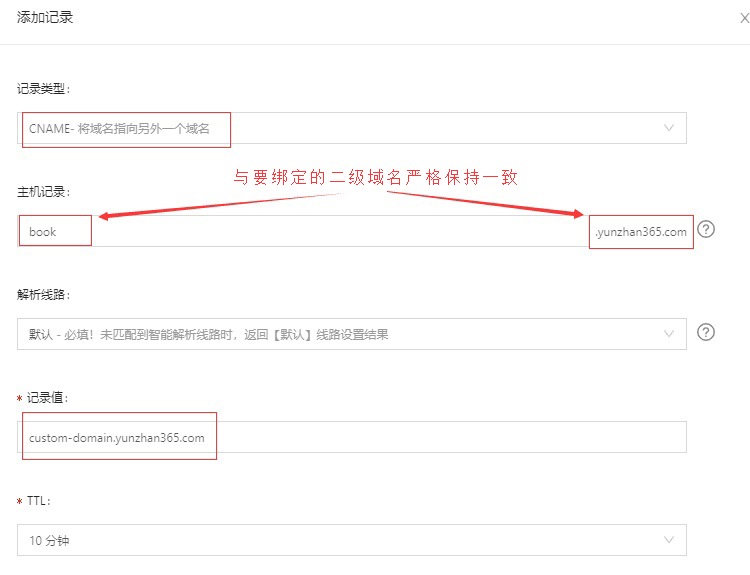 2)域名解析,添加一個記錄指向云展網(wǎng):custom-domain.yunzhan365.com