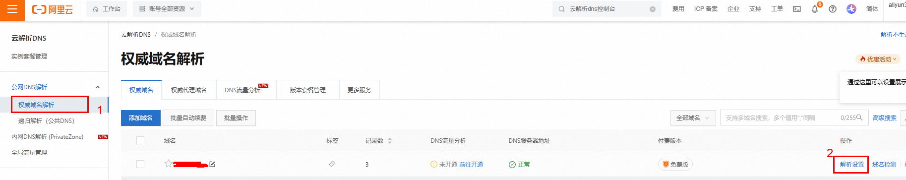 1)登錄阿里云網(wǎng)站,打開云解析DNS控制臺