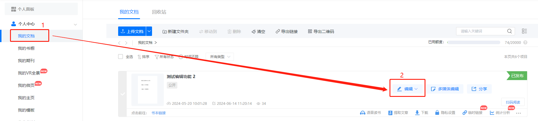 點擊【我的文檔】,選擇需要設置的電子畫冊點擊【編輯】。