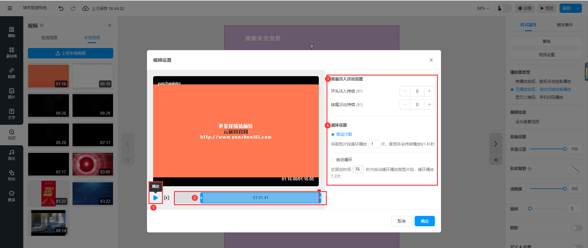 添加到書本的本地視頻,可以裁剪所需的時間段進(jìn)行播放。