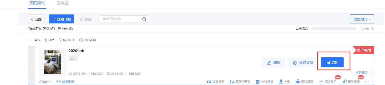 如果想晚點發布,也可以先不點發布本期,確定發布了在這里點擊啟用。