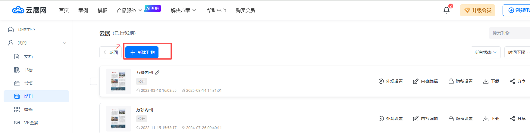 (1)點擊【管理期刊】進入,然后點擊【新建刊物】