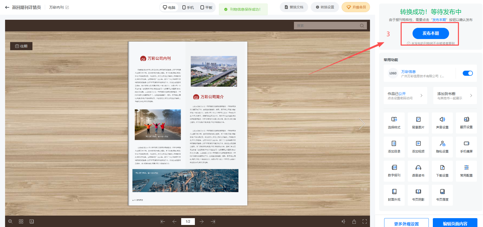 (3)設置刊物信息,設置好后點擊【發布本期】發布。