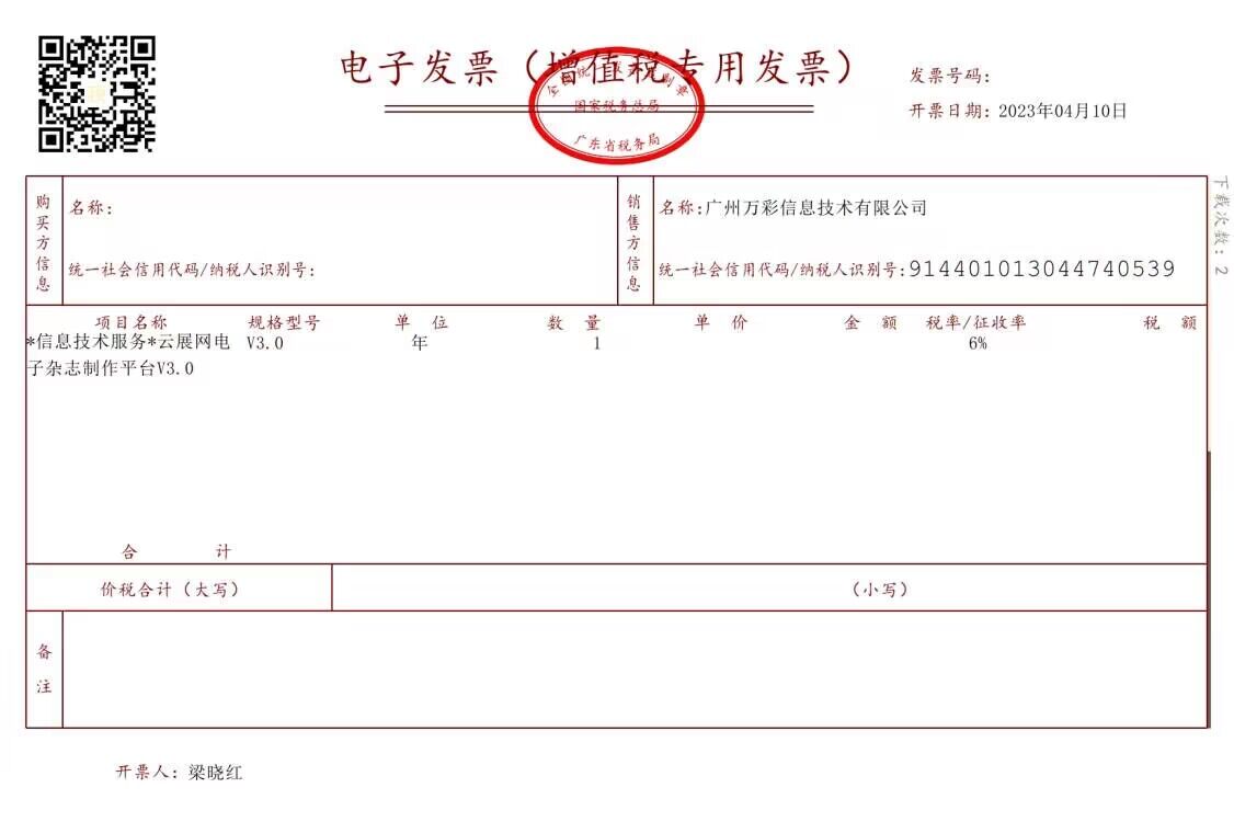2)申請增值稅普通發(fā)票或者專用發(fā)票電子版,開好的發(fā)票會發(fā)送到您填寫的郵箱上,一個工作日內(nèi)開具;