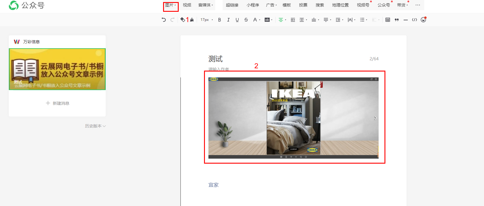 1、 在公眾號文章中,上傳需要設置跳轉的圖片