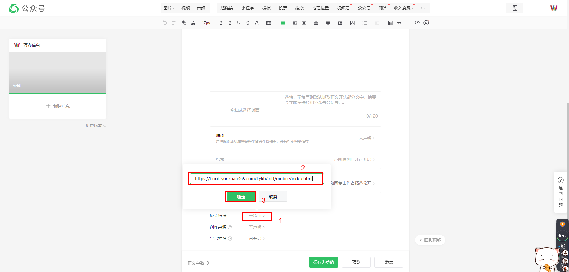 1、在發布的公眾號文章里,添加電子書/書櫥的鏈接為”原文鏈接”。