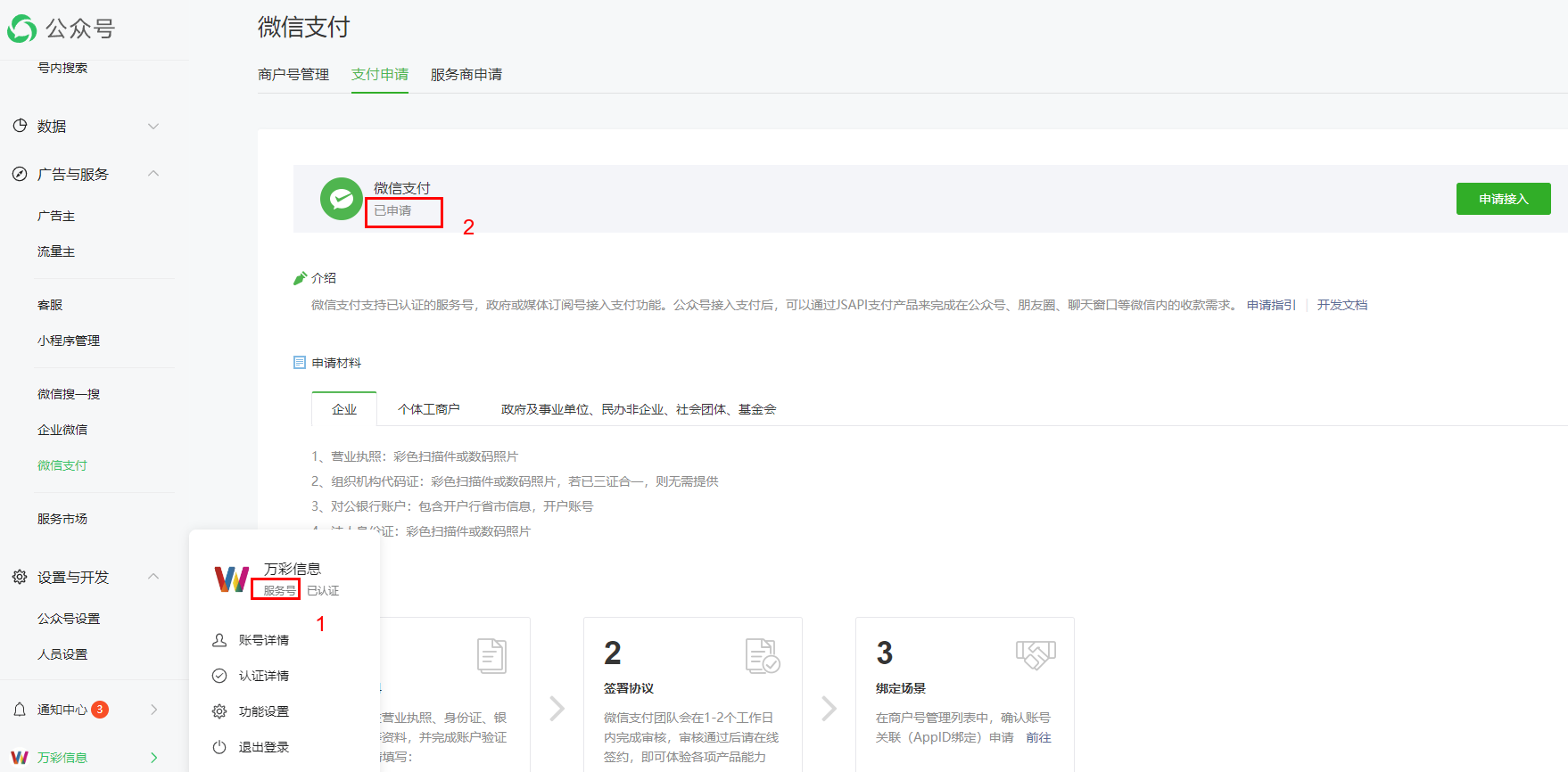 注意:這種方法要求您的公眾號必須是服務號,并且開通了“微信支付”功能,缺一不可。