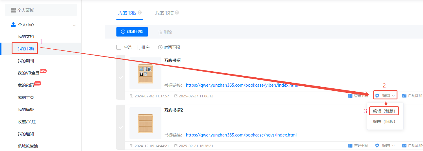 返回【我的書櫥】,點擊【編輯】,選擇【編輯(新版)】,進入編輯頁面。