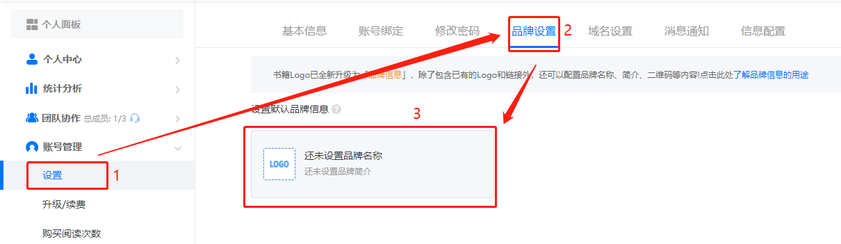 點(diǎn)擊【設(shè)置】,然后點(diǎn)擊【品牌設(shè)置】,創(chuàng)建品牌信息