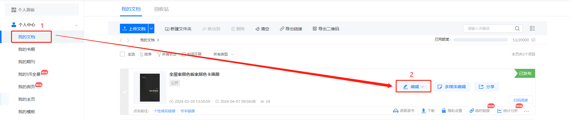點擊【我的文檔】,然后點擊【編輯】