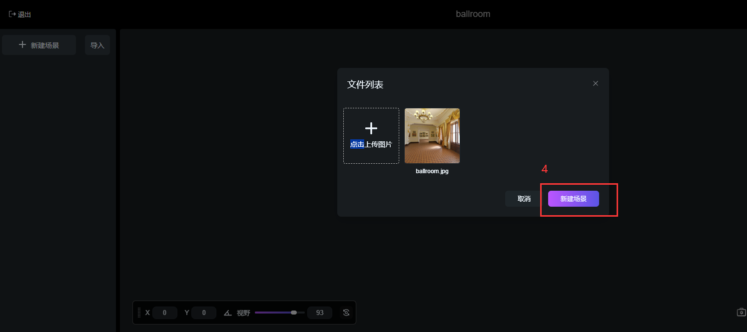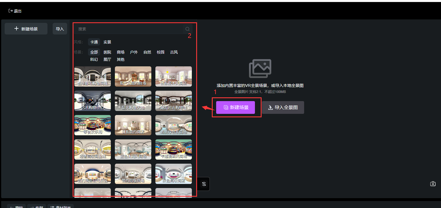 點(diǎn)擊【新建場景】添加內(nèi)置豐富的VR全景場景