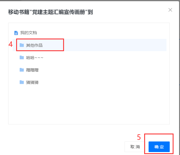 鼠標右鍵點擊書本–選擇【移動到】—【其他文件】–選中對應的文件夾