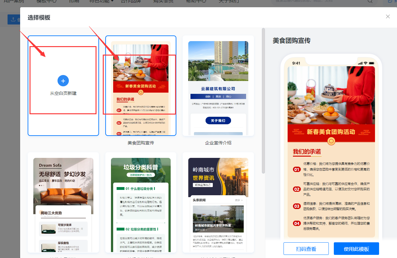3、選擇【從空白頁(yè)創(chuàng)建】或者選擇【模板套用編輯】
