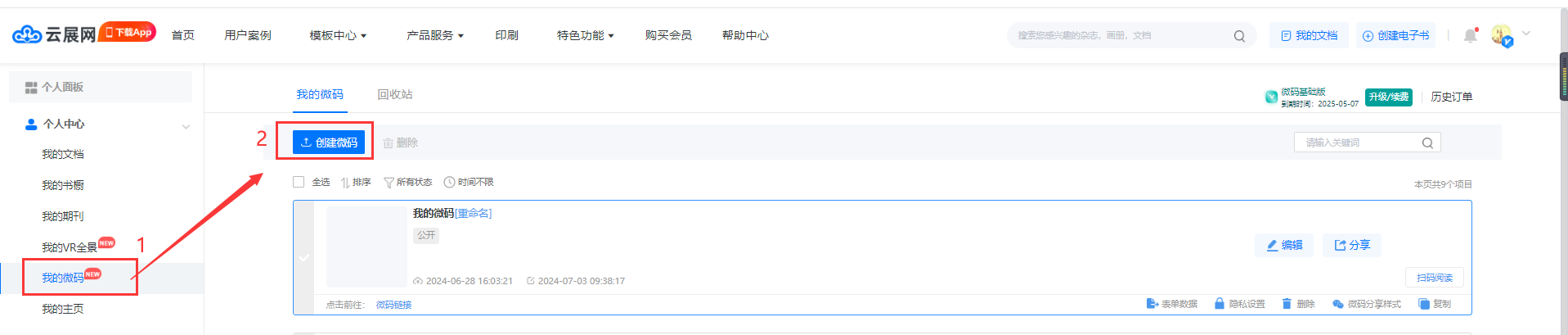 2、在【我的微碼】頁(yè)面,點(diǎn)擊【創(chuàng)建微碼】