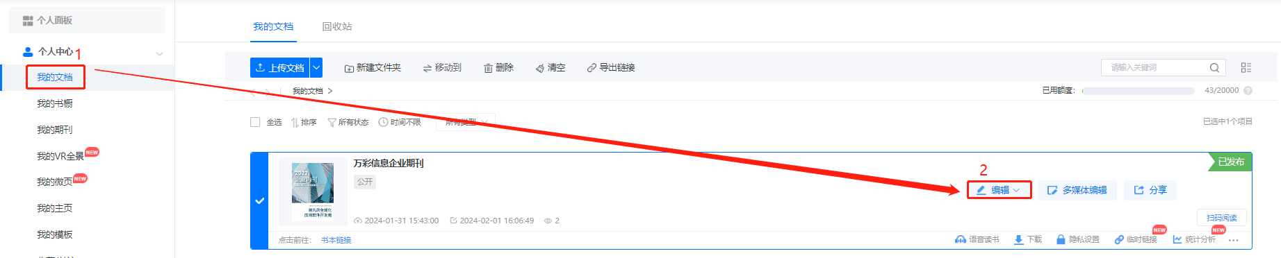點(diǎn)擊【我的文檔】,然后點(diǎn)擊【編輯】