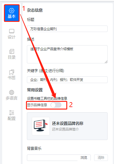 品牌信息能提高品牌的宣傳推廣力度,并且可以讓讀者了解品牌的基本信息,快速獲取聯(lián)系方式,云展網(wǎng)為了更好地幫助用戶推廣,因此用戶上傳的新書都是默認(rèn)開啟品牌信息,如果不需要顯示品牌信息的話也是可以手動(dòng)關(guān)掉的。