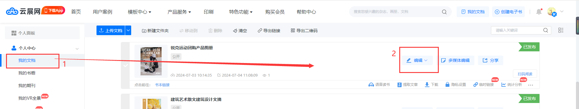 在【我的文檔】找到需要設置的書籍,點擊【編輯】進入