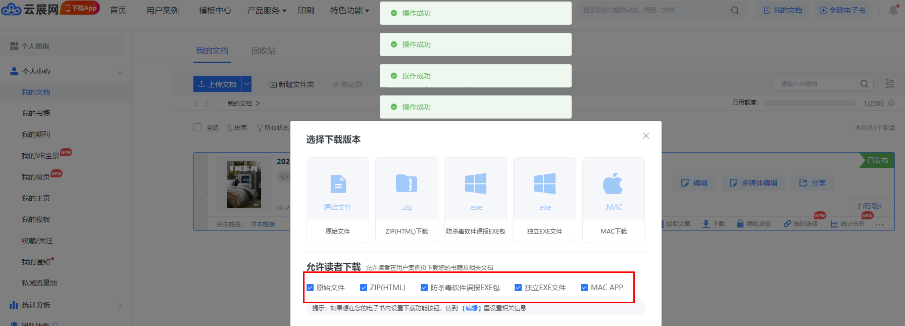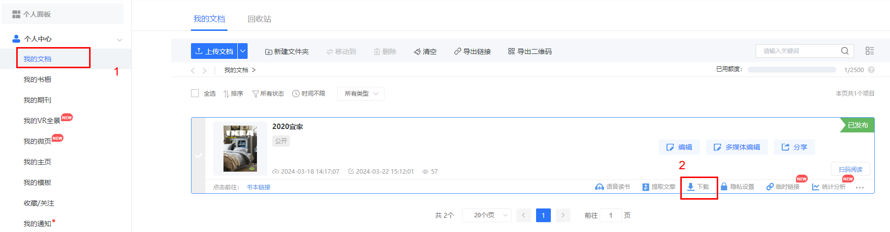 1)點(diǎn)擊【我的文檔】,允許下載的書(shū),點(diǎn)擊【下載】