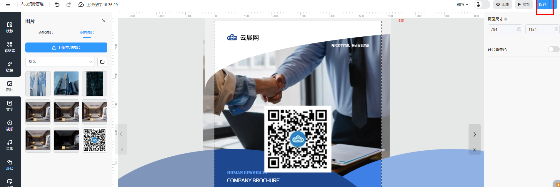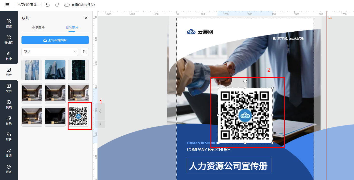 (2)單擊上傳好的圖片,添加好圖片以后可以調整圖片大小以及位置。