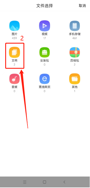 打開app點擊【上傳文件】,點擊【文件管理】,選擇【文檔】,即可看到保存的文件